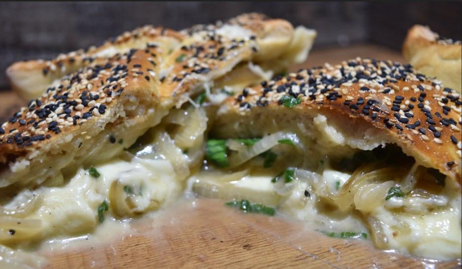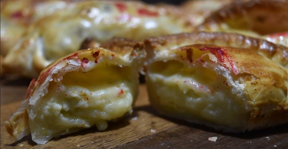 Por dentro: muzzarella y cebolla rehogada. Por fuera: muzzarella y cebolla cruda.