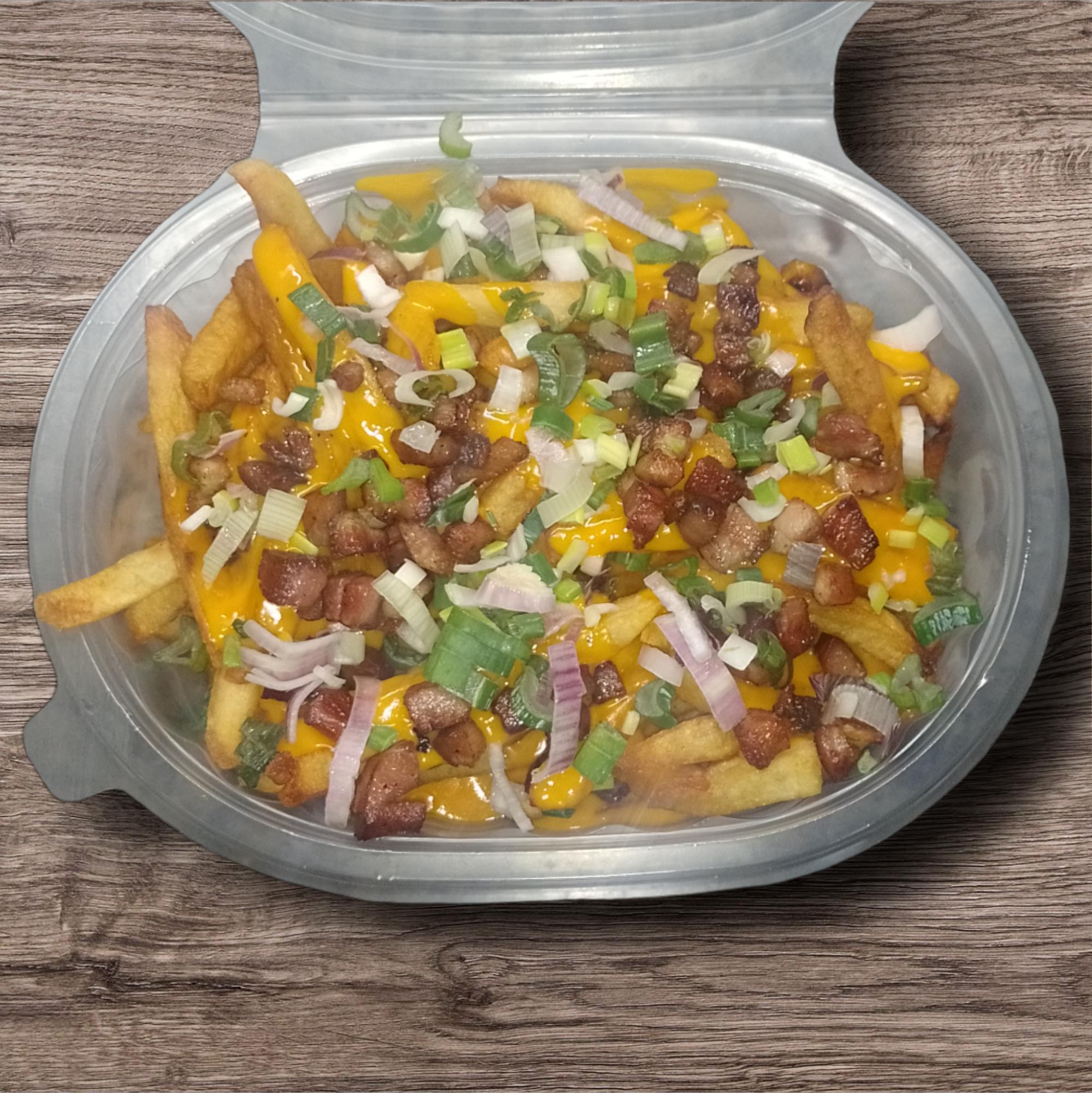Promo Papas con salsa cheddar,Panceta y Verdeo + 1 litro de cerveza artesanal