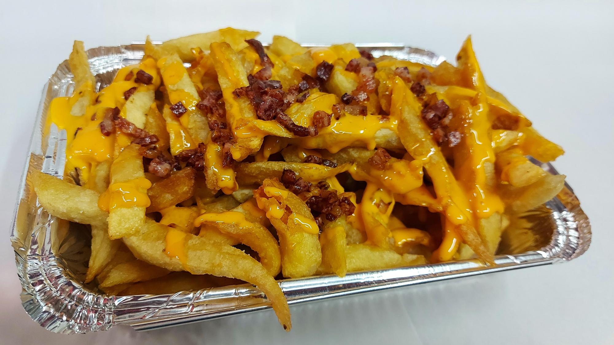 PAPAS FRITAS CON CHEDDAR Y BACON