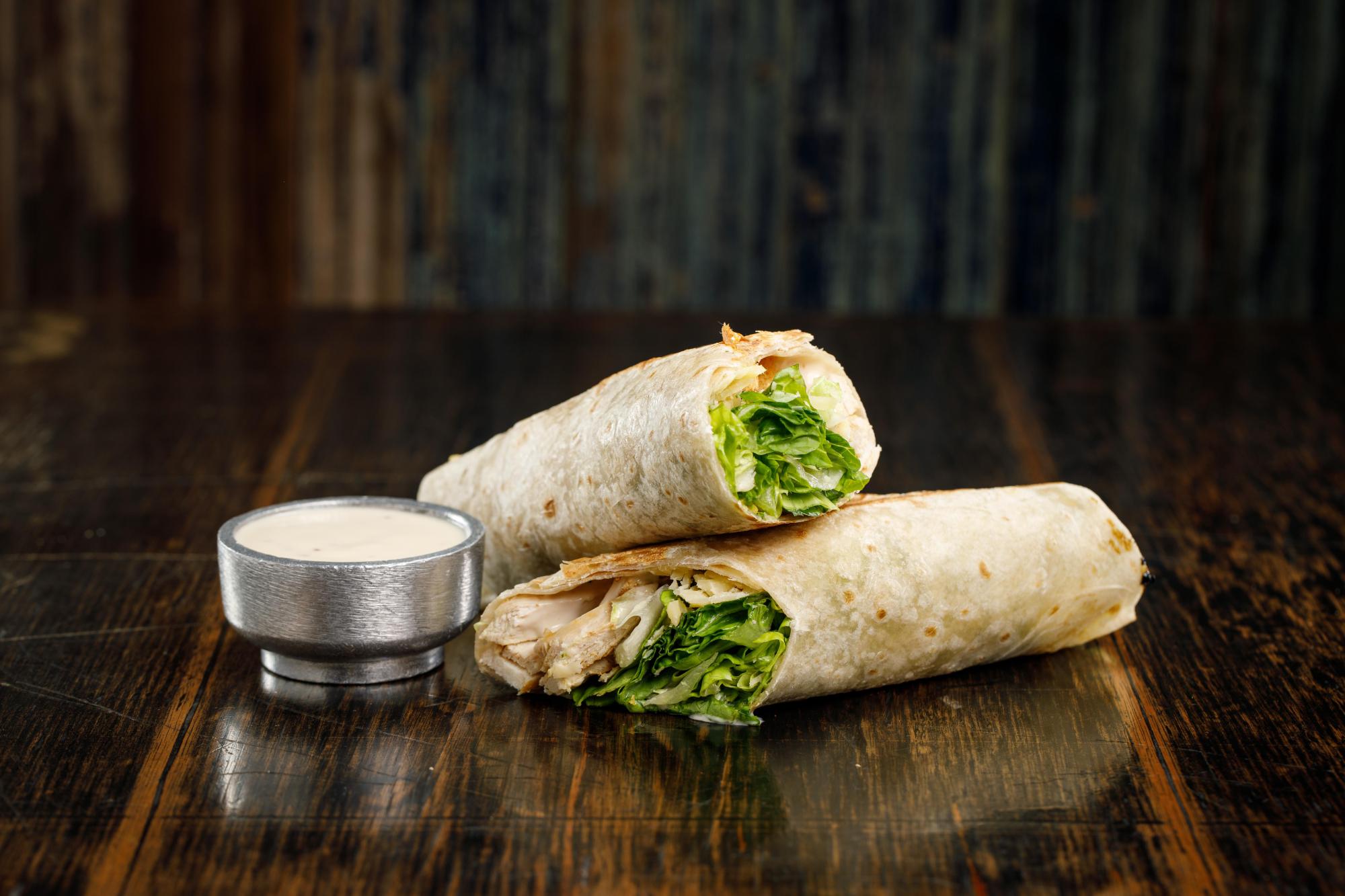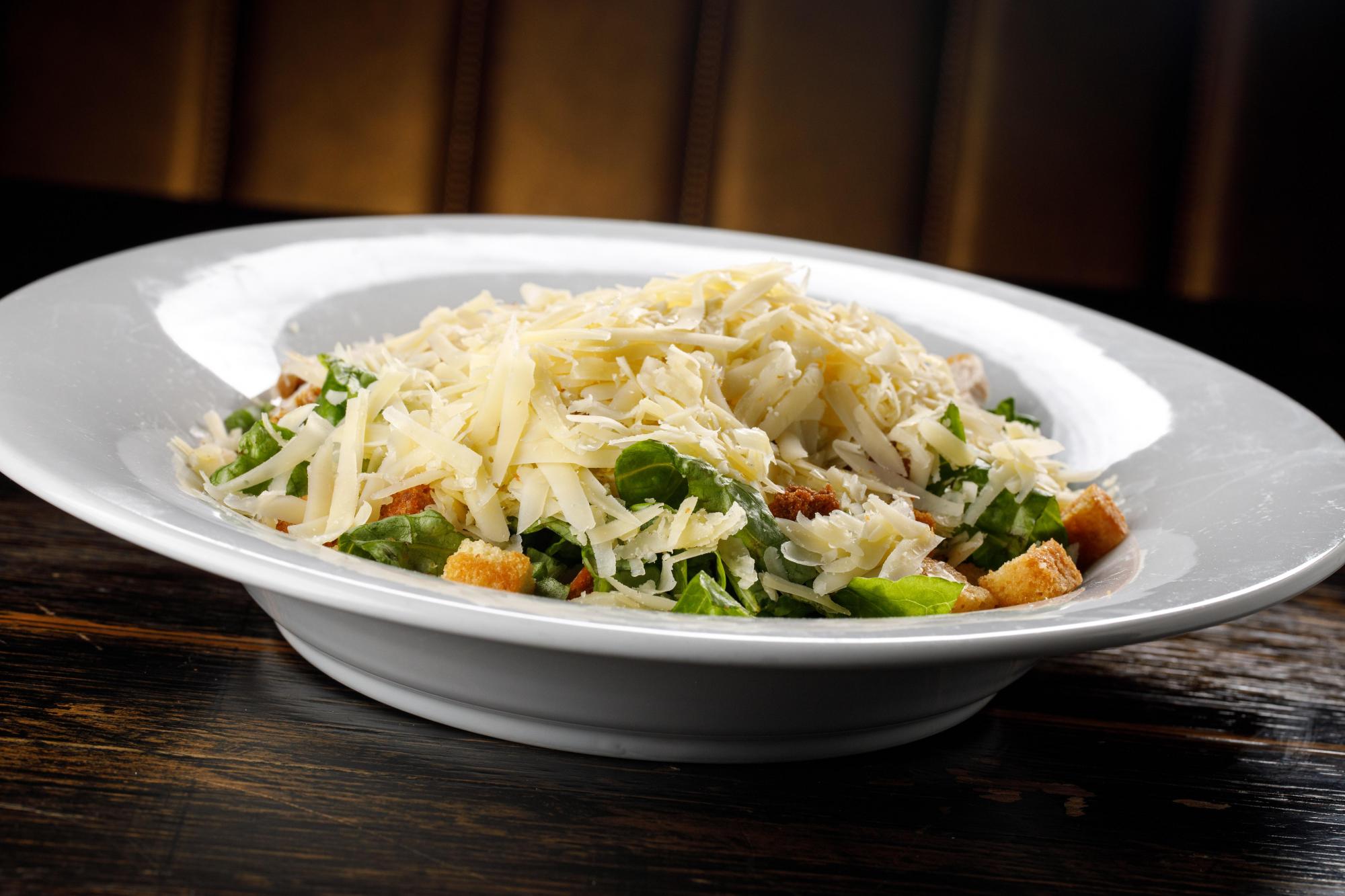 Pollo grillado, lechuga, queso parmesano, croutons y aderezo Caesar