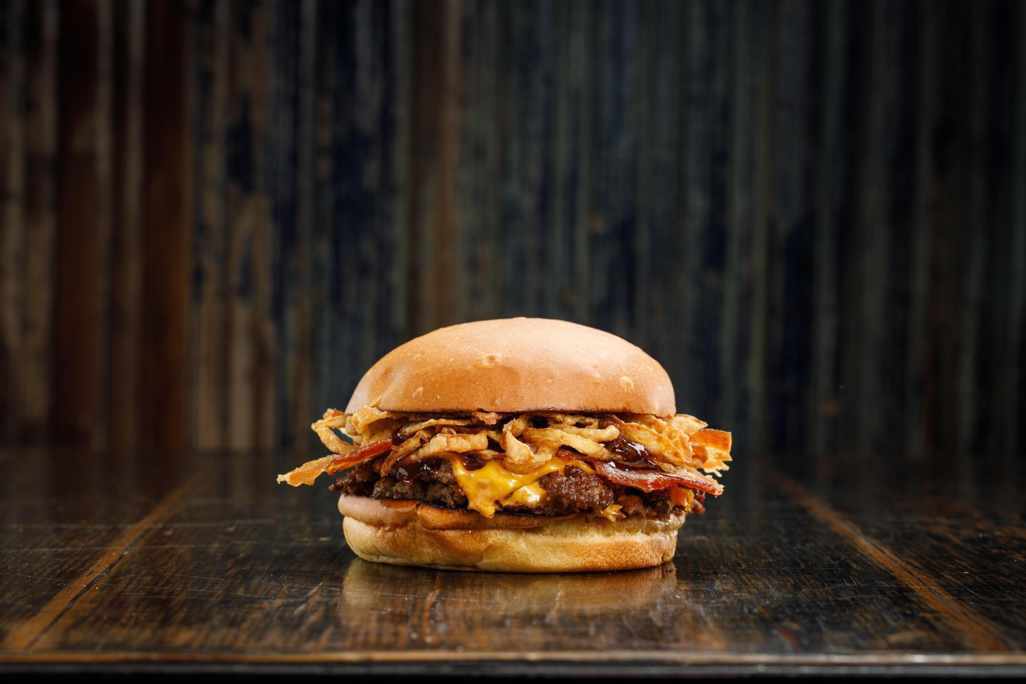 Carne 110gr, cheddar ,panceta, cebolla crispy y bbq