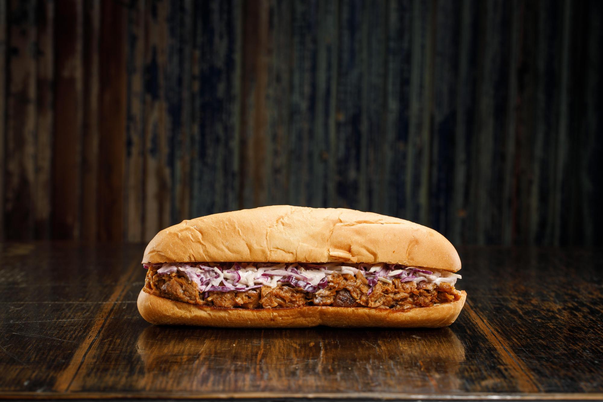 Sandwich de cerdo (braseado con cerveza y barbacoa) y coleslaw