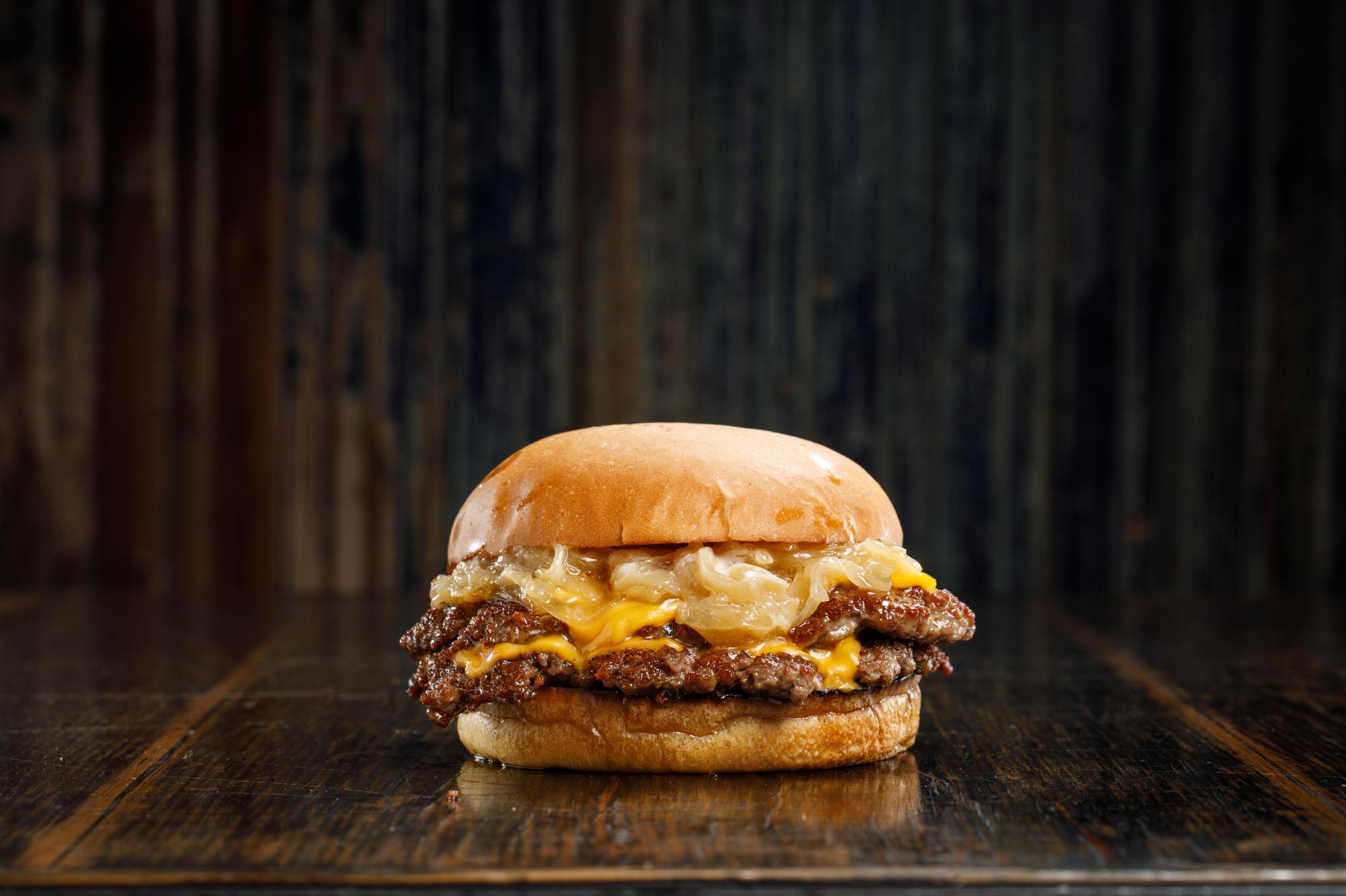 Carne de 110gr, cheddar, cebolla caramelizada y manteca