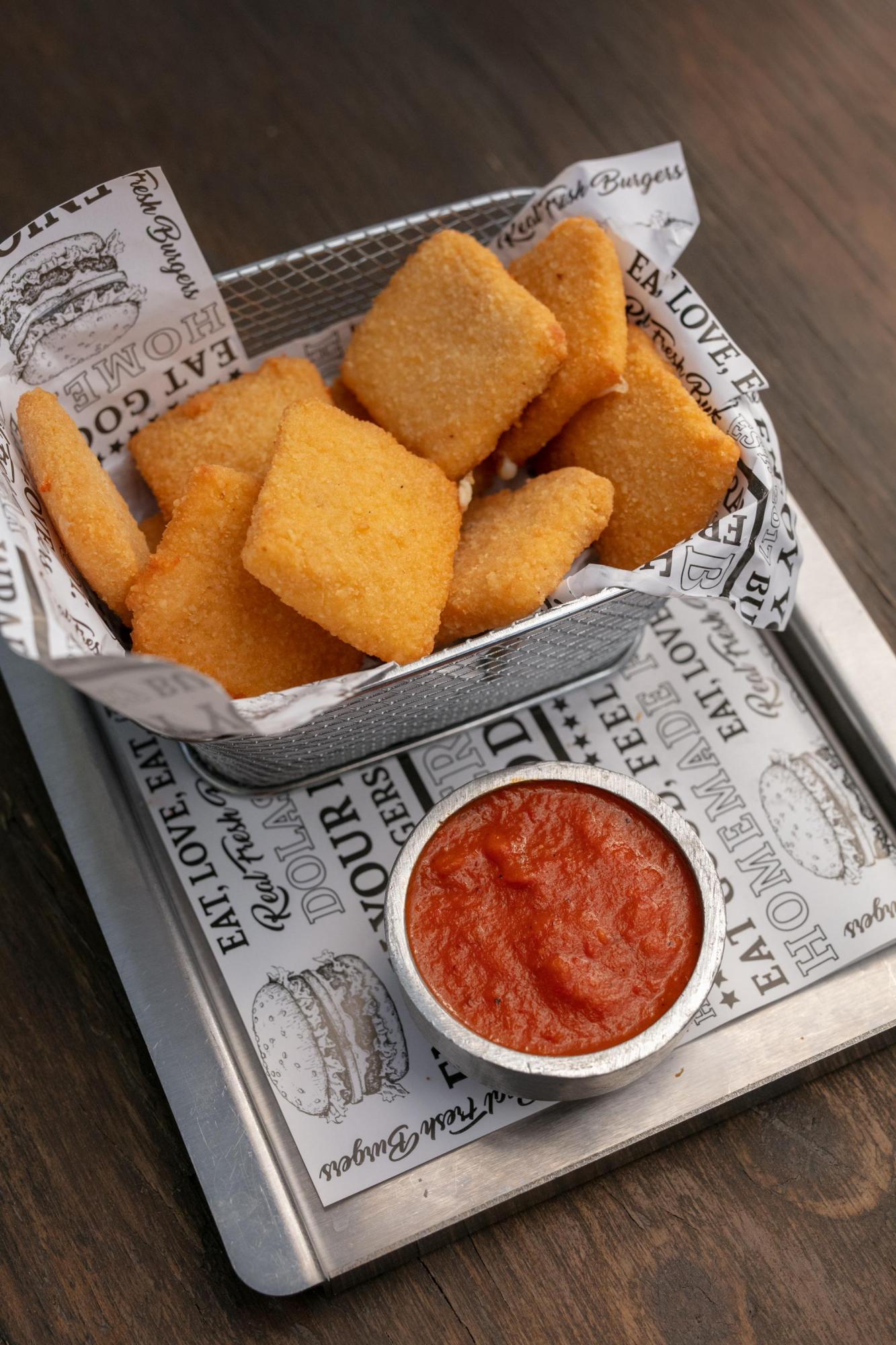 Bastones de queso mozzarella con salsa brava