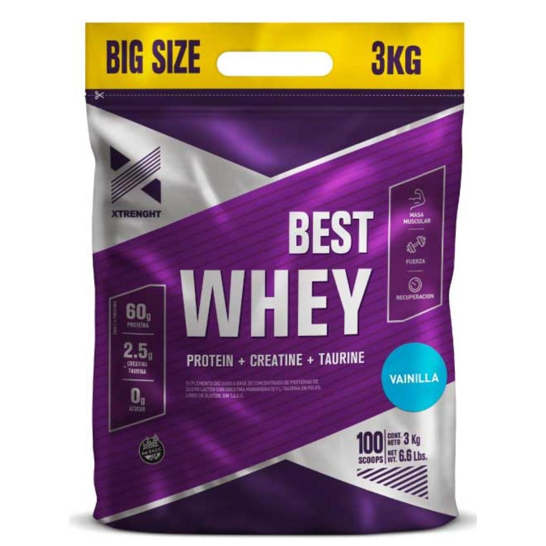 Contenido 3kg. Proteína de suero lácteo potenciada con la exclusiva combinación de Creatina, Taurina y Enzimas Digestivas. No genera trastornos digestivos. De rápida absorción y bajos niveles de grasas, carbohidratos y lactosa.