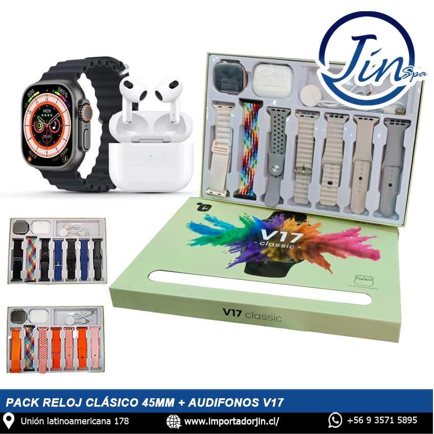Pack Reloj Clásico 45mm + Audifonos V17
