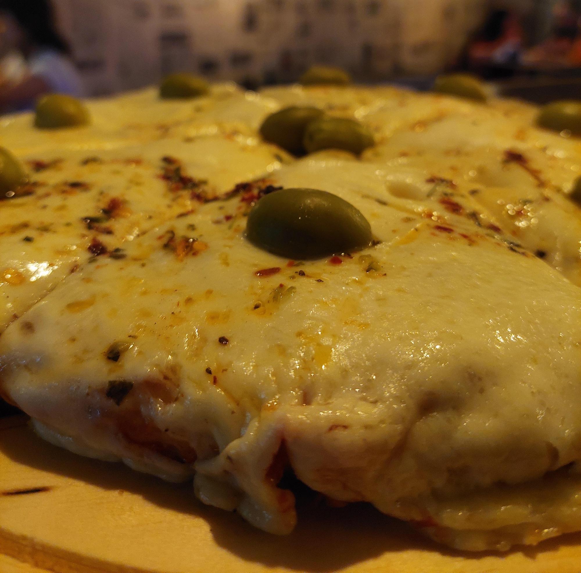 Doble queso,mozza, reggianito, queso azul y aceitunas negras