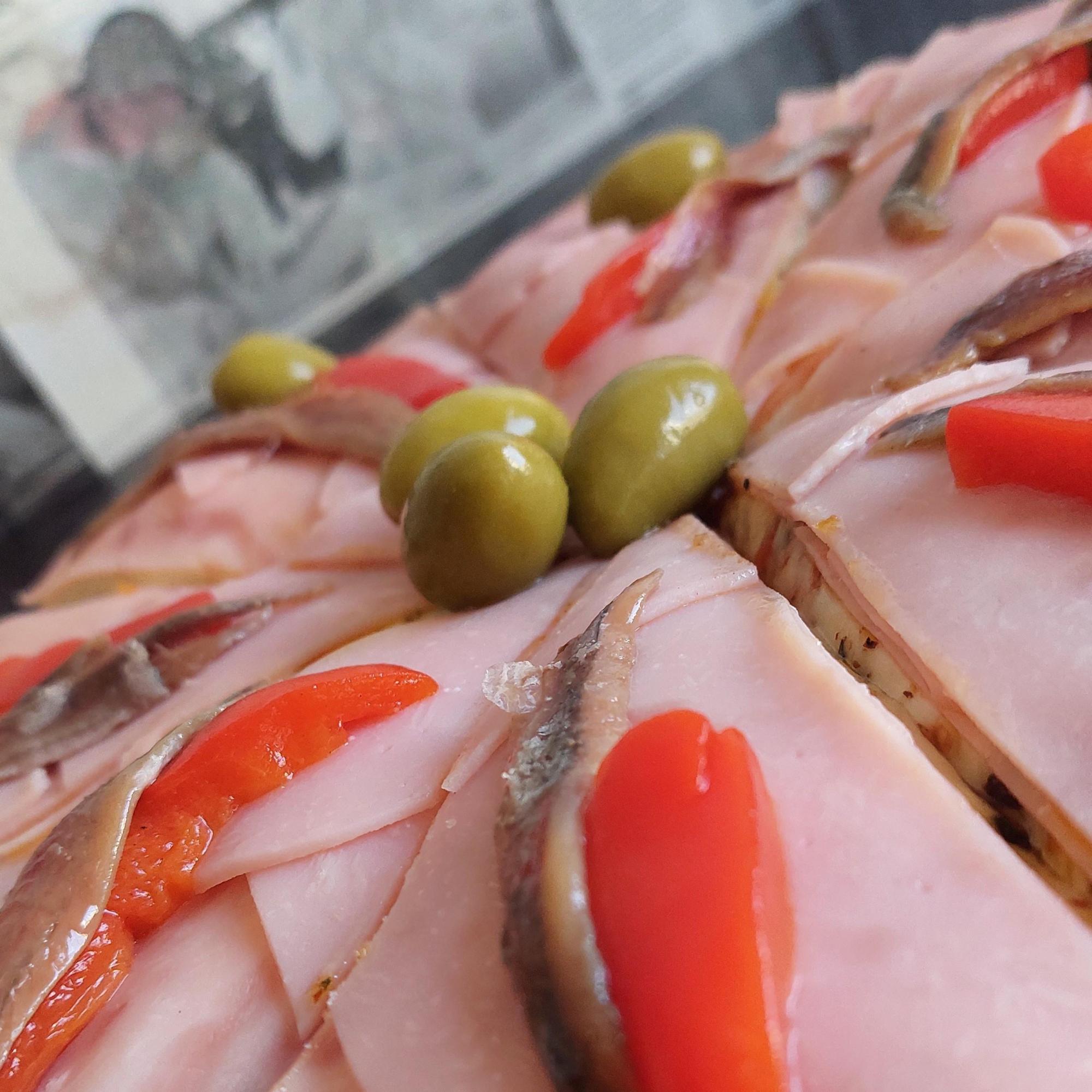 Morrones,aceitunas, jamón cocido y anchoas