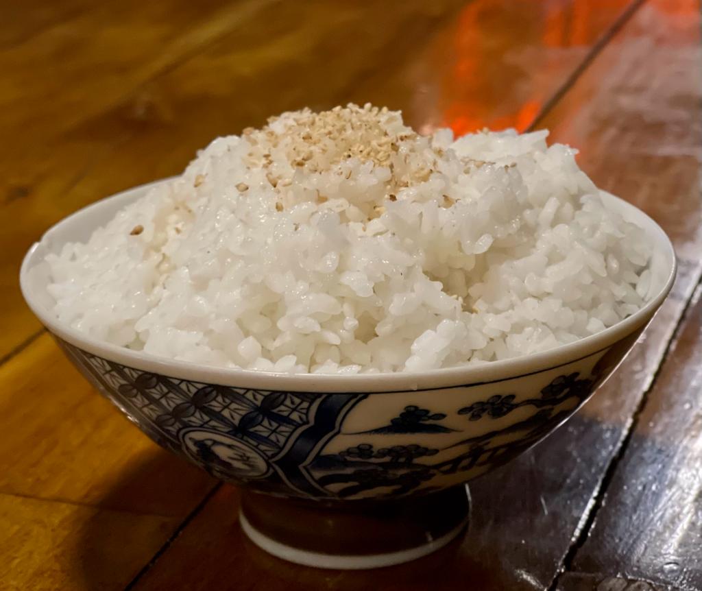 Panceta de cerdo tiernizado en salsa oriental y finalizada con salsa dulce, acompañado con gohan