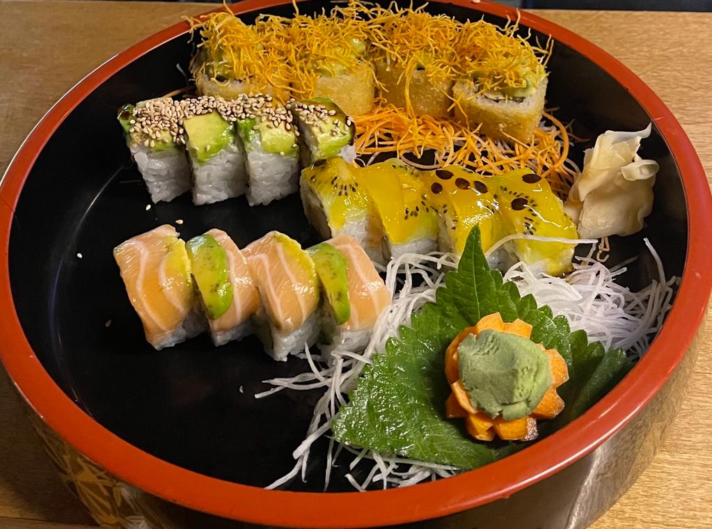 32 piezas: todo roll, ebi ten dragon, philadelphia, mexican y roll a eleccion del sushiman. 梅拼盘 卷物32件包含:天妇罗虾,费城卷,墨西哥卷,纽约卷