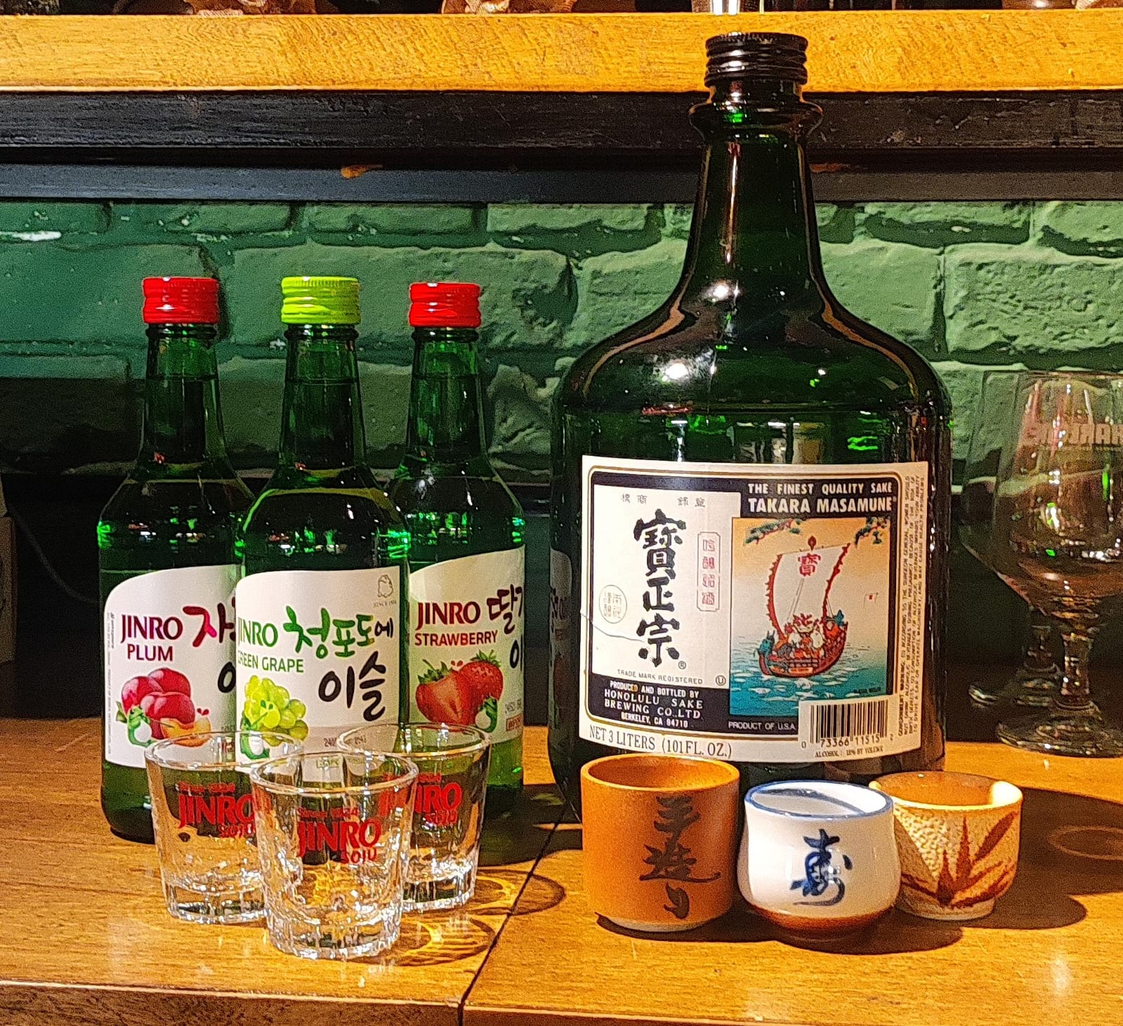 Caja especial contiene 4 sojus variados con 2 vasitos.